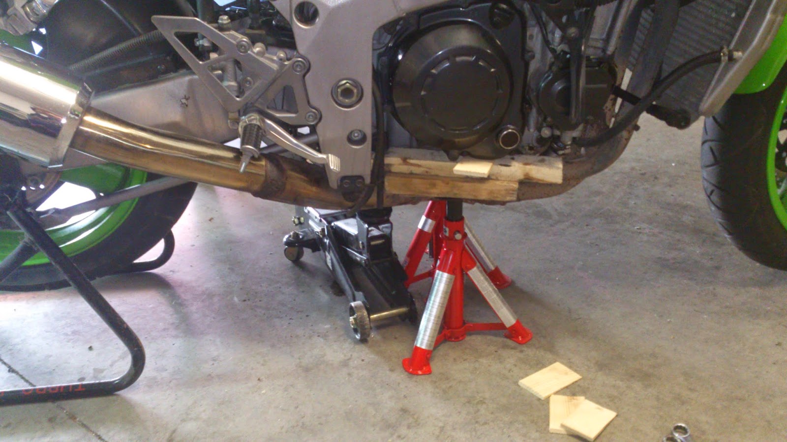 El domingo me puse a cambiar los rodamientos de dirección. Lo primero, calzarla bien: